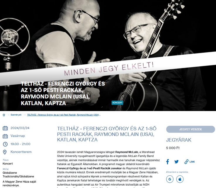A KTCM nyugalmazott igazgatója és a legendás McLain Family Band multiinstrumentalista muzsikusa, Raymond McLain meghívásunkra több ízben is járt már Magyarországon. Az irányításával zajló, általában egyhetes intenzív, bentlakásos szakmai műhelyek munkáját egy-egy nagyszabású nyilvános koncert során mutatják be a nyilvánosságnak a résztvevők.